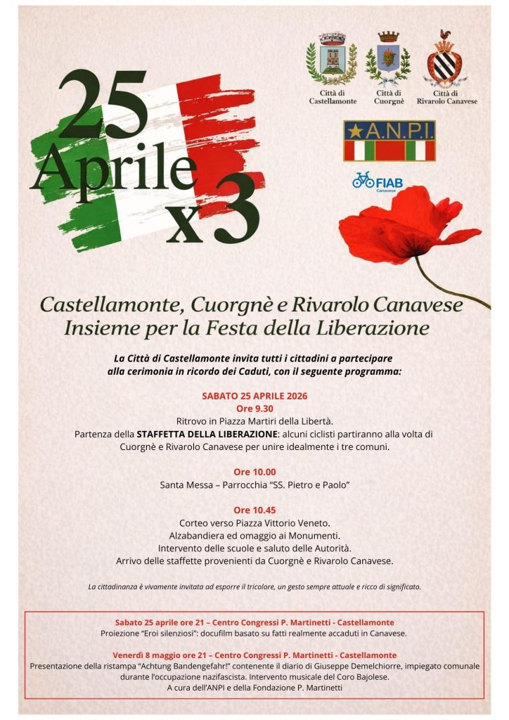 Castellamonte, Cuorgnè e Rivarolo Canavese festeggiano insieme il 25 aprile con il seguente programma: