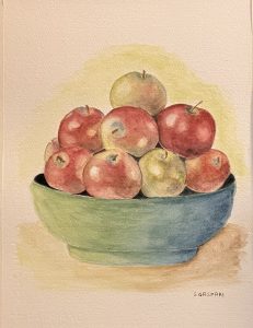 34 Steania Gaspari – Natura morta con mele – acquerello