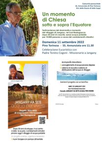 Domenica 11 settembre nella chiesa della SS. Annunziata a Pino Torinese, ore 11,30, celebrazione eucaristica con padre Tonino Cogoni, missionario a Jangany.