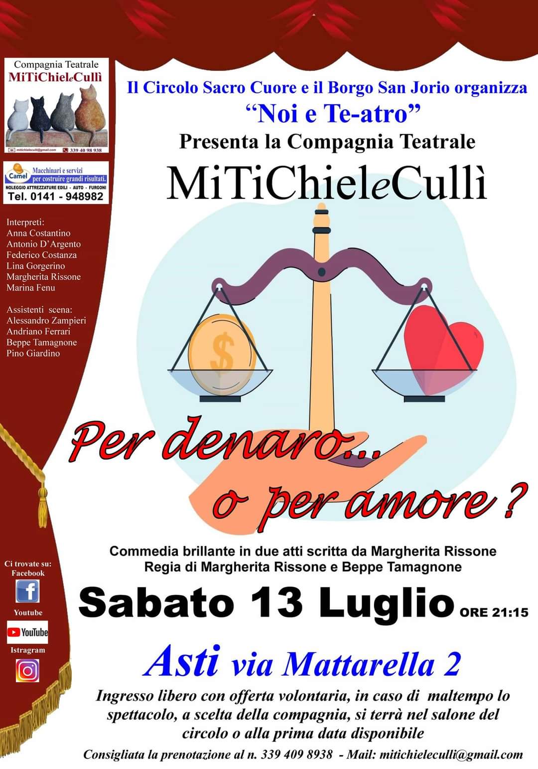 ASTI. Sabato 13 luglio “PER DENARO … O PER AMORE ?” presso il Circolo Sacro Cuore Via Mattarella 2.