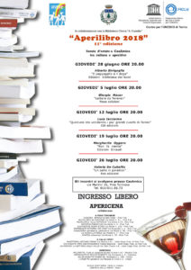 Come di consueto il giardino di CasAmica in via Martini 16 ospiterà gli incontri dell’Aperilibro. Alle h. 20,00 presentazione del libro e incontro con l’autore e a seguire l’apericena preparato dai volontari dell’associazione Vivere in collaborazione con i negozi di alimentari di Pino.
