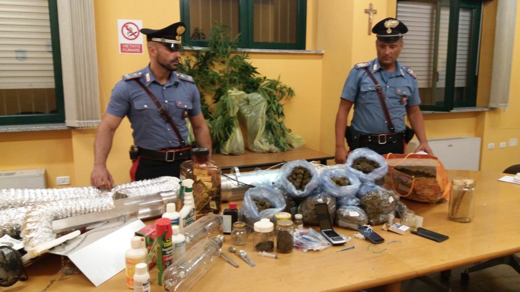Lo scorso 29 agosto alle 22 i carabinieri hanno arrestato Federico D., 40 anni, residente a Chieri, per detenzione di droga. In casa i militari hanno trovato 10 buste in cellophane contenente marijuana per un peso complessivo di 2 Kg nonché 8 piante di cannabis indica in fase vegetativa, due serre munite di lampade UVA e relativo sistema di areazione, concimi chimici e antiparassitari impiegati per la coltivazione delle piante, un bilancino di precisione e telefono cellulare utilizzato per l’attività di spaccio. L’uomo è stato collocato ai domiciliari.