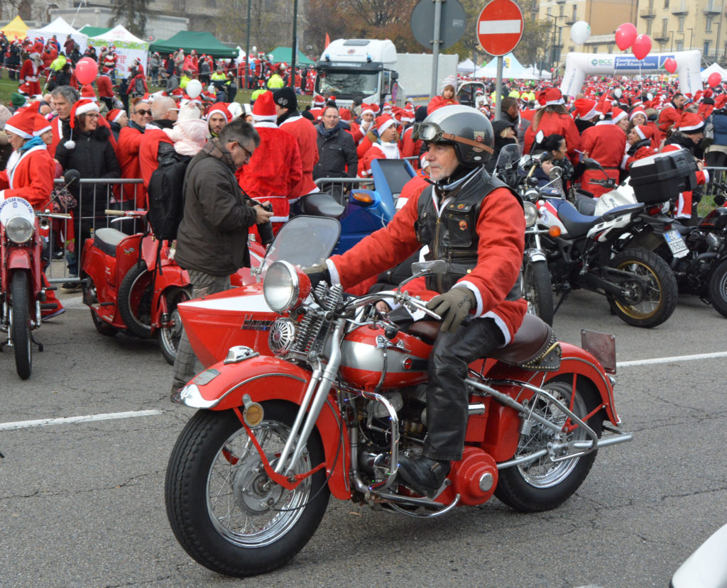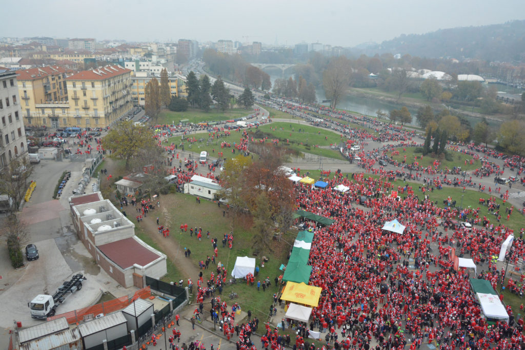 Record assoluto per il raduno benefico delle persone vestite da Babbo Natale, domenica 2 dicembre a Torino, davanti all’ospedale infantile Regina Margherita. Una fiumana di 20 mila, uomini e donne, vestiti da Santa Claus, ha riempito il piazzale e le vie dell’accesso all’ospedale. C’erano il presidente della Regione Piemonte Sergio Chiamparino e la sindaca di Torino Chiara Appendino che hanno anche improvvisato un ballo a due sul palco. Raccolti 150 mila euro dalla Fondazione Forma per l’aggiornamento delle apparecchiature di risonanza magnetica. Circa 7.000 Babbi Natale sono partiti in sella alle loro rombanti moto, dal Mo.Vi. di Beinasco ed hanno attraversato tutta la città. Gli altri circa 17.000 Babbi Natale sono arrivati all’ospedale infantile a piedi, dopo avere percorso i 3 km della “camminata solidale”.