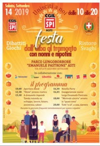 Dopo anni di interruzione torna la festa dedicata a nonni e nipoti organizzata dallo SPI Cgil. Sarà il Parco Lungo Borbore, in via Atleti Azzurri Astigiani, a fare da cornice, il 14 settembre, alla festa voluta dal Sindacato Pensionati della Cgil di Asti.
