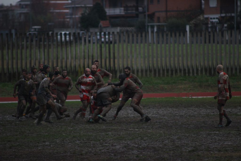 La prima di ritorno si apre con il Rivoli ospitato sul campo di Volpiano. Ancora una volta il terreno di gioco si trova ad essere pesante e martellato da una fitta pioggia, che ha segnato il gioco per tutto l’incontro. La partita si apre con le due squadre che cercano di spostare palla con calci oltre la linea avversaria. Poche palle giocate e molte mischie ordinate. Al dodicesimo il Rivoli approfitta di un calcio di punizione per un entrata laterale in maul e porta il parziale sullo zero a tre. Gli ospiti riescono a spingere il San Mauro verso la propria linea di meta e, sfruttando un rimpallo su un calcio di liberazione riescono a trovare la prima meta. Con la trasformazione di va sullo zero a dieci per il Rivoli. Il San Mauro cerca la reazione, porta avanti la palla e arriva ad essere pericoloso, ma qualche errore gli impedisce di arrivare a meta. Al ventisettesimo, Rosso, con un calcio di punizione accorcia le distanze, dopo un fallo avversario durante una ruck. È ancora però l’avversario che, nonostante il terreno pesante e la buona difesa del San Mauro, riesce ad impostare una maul da touche che porta fino alla meta la compagine biancorossa. Alla fine del primo tempo il risultato è di tre a quindici. Il secondo tempo non regala grandi emozioni, pochissimi i palloni giocati e molte le azioni statiche. Il San Mauro non riesce a sfruttare bene le poche occasioni a sua disposizione per rendersi pericoloso e risalire la china. Il Rivoli è bravo ad ingabbiare la palla e rallentare al massimo il gioco, non permettendo la rimonta dei “cinghiali”. Al trentaquattresimo Rosso ancora una volta centra i pali con una punizione, sugli sviluppi di una contro ruck impostata in maniera fallosa da parte del Rivoli. Purtroppo però, i minuti di gioco a disposizione sono pochi per recuperare e la partita termina con la sconfitta del San Mauro per sei a quindici. Partita ampiamente segnata dal meteo e dalle condizioni del campo, che il San Mauro non è riuscito a girare a suo favore. Alcuni errori non hanno permesso di giocare i pochi ovali a disposizione, l’avversario è stato abile nel rallentare il gioco e bloccare le avanzate dei padroni di casa. Si riparte domenica 15 contro il Pedona, sul campo di Cuneo.