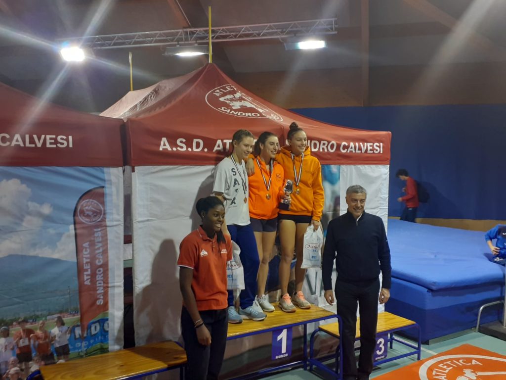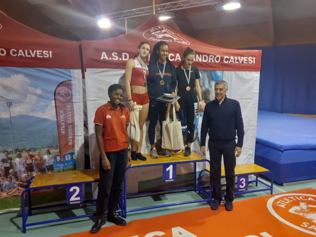 Al Meeting nazionale 10° Trofeo indoor ‘Sandro Calvesi – Sprint & Hurdles’, svoltosi ad Aosta, Palaindoor, domenica 12 Gennaio, brillanti risultati di tre giovaniswsimi velociti della Novatletica Chieri. Luca Rubatto e Matteo Scamardella sono arrivati al primo e al secondo posto nei 60 metri piani categoria Ragazzi, con i tempi rispettivi di 8”98 e 9’02, mentre nei 60 metri piani Cadette si è registrato l’exploit di Agnese Musica, prima in 7”73 a 2/100 dal record nazionale di categoria. Vittoria anche per Gaya Bertello nei 60 metri piani categoria Allieve, con il tempo di 7”70. Nelle foto (dall’alto in basso) il podio di Rubatto-Scamardella, Agnese Musica e Gay Bertello.