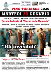 Alle ore 20.30 si terrà lo spettacolo “I ragazzi di Villa Emma” dei giovani pinesi del Teatrobaleno, cui seguirà la proiezione del film “GLI INVISIBILI”, di Claus Räfle.