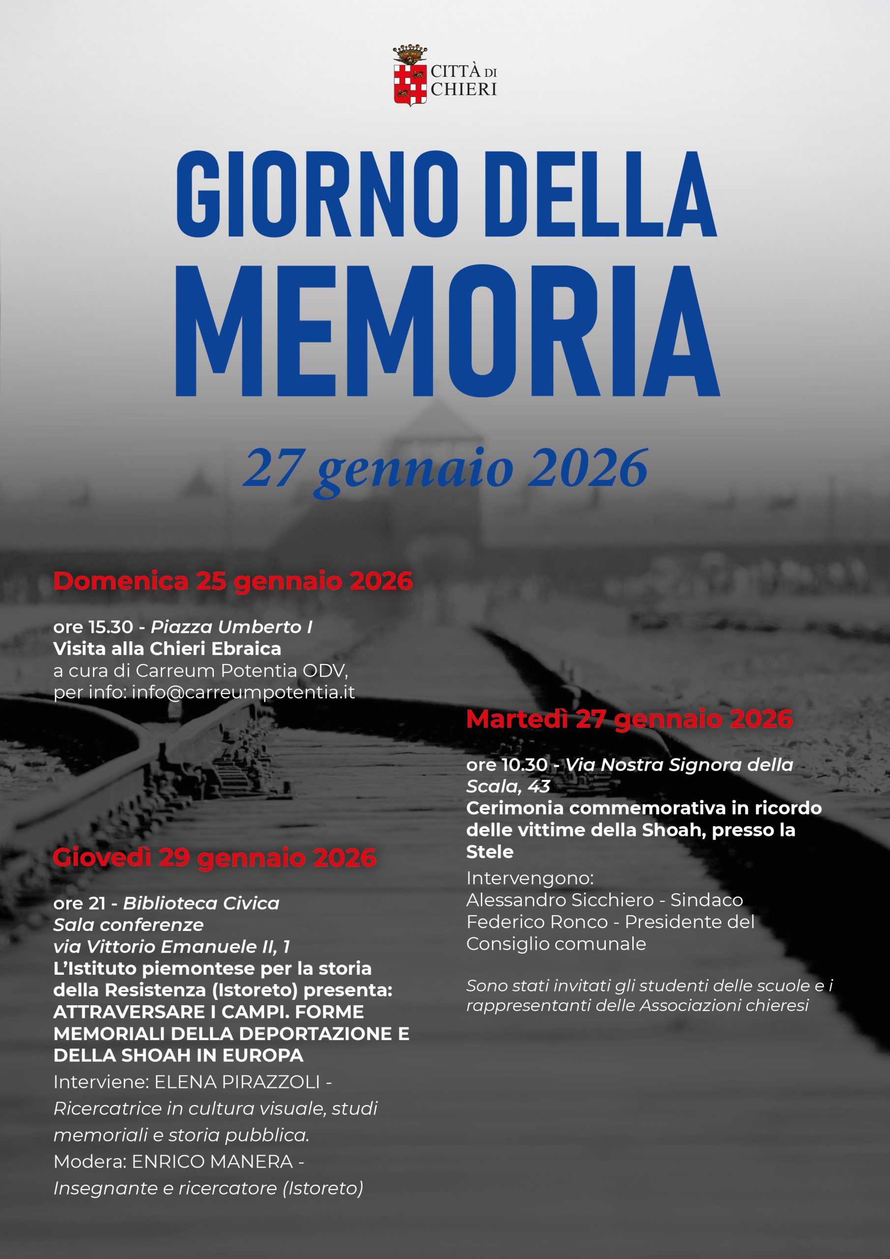 Pallavolo. Chieri ’76 in campo all’Inalpi Arena per le Finali Coppa Italia FrecciarossaChieri, Carnevale: sabato 24 sfilata confermata, è corsa contro la pioggia annunciata nel tardo pomeriggioChieri. Triplo blackout giovedì pomeriggio, ferme anche le fabbriche. “Problema di distribuzione a monte”Poker online: la matematica al tavolo da gioco — Guida di Dudespin Novara. Le iniziative per la Giornata della MemoriaDOMODOSSOLA. AGGREDISCE I CARABINIERI DURANTE UN CONTROLLO. GIOVANE 28ENNE ARRESTATOAsti. L’Ufficio Immigrazione della Questura accompagna coattivamente alla frontiera un cittadino macedone pluripregiudicato.TORINO: LA POLIZIA DI STATO ARRESTA GLI AUTORI DELLA RAPINA COMMESSA IN UN’AGENZIA DI UN ISTITUTO BANCARIO IN CORSO TRAIANOPino Torinese. Presentazione del libro “L’altra collina”Chieri ricorda il Giorno della MemoriaPallavolo A1 femminile. Cuneo, un set da grande non basta. Milano si prende i 3 puntiPallavolo A1 femminile. Il Monviso Volley vince al tie break la sfida con la Eurotek Laica UybaPallavolo A1 femminile. Igor Novara, vittoria in tre set contro PerugiaTROFARELLO. TENSOSTRUTTURA PALAPERTINI, RACCOLTA FIRMERiva presso Chieri. Ladri al distaccamento dei Vigili del Fuoco volontari: rubate attrezzature per 5 mila euro e danni ingentiNichelino. Per San Sebastiano la Polizia Locale presenta i risultati dell’attivitĂ 2025Chieri. L’Associazione Donne solidali presenta il libro “Le donne camminavano a Kabul”PIEMONTE ARTE: SEPE NOVARA A CHIERI, PREMIO SAN GAUDENZIO, BENE VAGIENNA, MARCO VALLORA AD ALBA, PINOTTINI, RACCONIGI…Pallavolo A1 femminile. Chieri rimonta Macerata e prende i 3 puntiSavigliano celebra San SebastianoCasale Monferrato. Celebrazioni per il Giorno della MemoriaSantena. La Polizia Locale festeggia San Sebastiano e la Coldiretti Sant’Antonio1234512345678 Visto da: 225.577