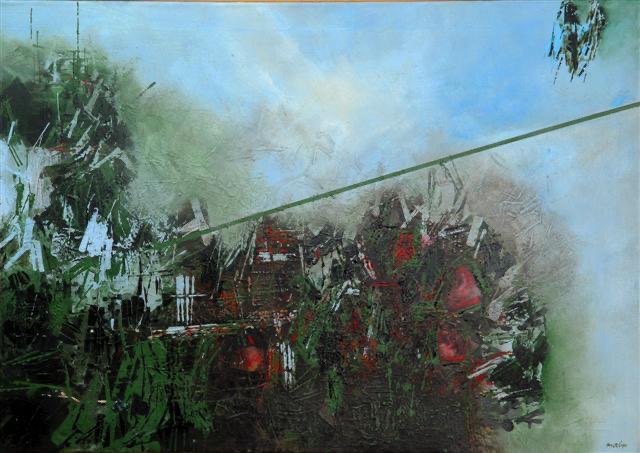 Primavera – Concerto in Mi maggiore – Fiori d’Acqua – Movimento e Bacchetta del Direttore d’orchestra Olio su tela, cm.100×70