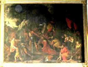Non si può dire che negli ultimi decenni non sia stato fatto nulla per salvare il patrimonio artistico chierese. Iniziati negli anni Cinquanta del Novecento, non sono mai terminati i restauri nel Duomo e nelle altre chiese della città, come San Bernardino, San Domenico, l’Annunziata, San Giorgio, San Leonardo e nei più importanti  edifici storici, come il palazzo Valfrè, i palazzi Tana e Bruni, il ghetto. Anche se meno appariscenti, sono stati innumerevoli gli interventi su opere minori: basti pensare ai quadri sei-settecenteschi delle cappelle del Duomo restaurati in serie negli ultimi decenni del Novecento; alla quattrocentesca statua lignea di San Giacomo nella chiesa di San Bernardino; a quella di San Giorgio nella chiesa omonima;  al Crocifisso e al coro lignei del Duomo; al soffitto  ligneo del palazzo Ceppi. Ma proprio sul fronte delle opere minori e meno appariscenti riteniamo ci sia ancora molto da fare. Con questa rubrica,   Centotorri intende richiamare l’attenzione su alcune di esse. A cominciare da due grandi quadri seicenteschi molto malandati, appartenenti alla Casa di Riposo  Giovanni XXIII e conservati nei locali attigui alla cappella. Misurano cm 250 x 180 e raffigurano rispettivamente Gesù condotto al Calvario e Sant’Andrea condotto al martirio. Nel primo, il centro della scena è occupato da Gesù che cade sotto il peso della croce. Un energumeno gli sta davanti e cerca di farlo rialzare; un altro, da dietro, lo aiuta a sostenere la croce. Le pie donne lo compiangono. Soldati a piedi e a cavallo lo scortano. In lontananza, in cima al monte, in mezzo ad una chiazza di luce, si vedono le due croci dei ladroni alle quali a breve si unirà la sua. L’altro quadro segue lo stesso schema: al centro, l’Apostolo Andrea, mentre viene condotto al supplizio, cade in ginocchio vedendo in lontananza, in cima al monte, la croce sulla quale sarà inchiodato. Davanti a lui un aguzzino lo strattona per farlo procedere; alle sue spalle, un altro gli solleva il mantello per facilitargli i movimenti; pie donne compiangono; attorno, soldati a piedi e a cavallo; sullo sfondo, un cielo carico di nubi a sottolineare la tragicità dell’avvenimento. Due opere probabilmente dovute allo stesso pennello di scuola romana. Due quadri gemelli, che si richiamano l’un l’altro non solo per il soggetto ma perché le due scene vi sono raffigurate con lo stesso identico schema. Probabilmente si fronteggiavano in qualche cappella patrizia a noi sconosciuta e sono giunti per via di eredità all’ex Ospizio di Carità. E mentre il primo è probabilmente un dipinto originale, il secondo è la copia di un affresco eseguito da Guido Reni per la cappella di Sant’Andrea nella chiesa di San Gregorio al Celio di Roma. Si tratta, comunque, di quadri dalla buona tecnica. Un accurato restauro, oltre a rivalutarli, potrebbe riservare qualche sorpresa nell’individuazione dell’autore.