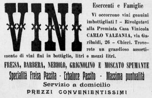 Ma dal vitigno freisa non si ottenevano solo vini di pregio e da pasto ma anche un passito molto apprezzato. Infatti già nel 1884 il produttore di Chieri Giuseppe Gerbino era stato premiato con la medaglia d’oro alla Esposizione Generale Italiana di Torino, nella sezione vini rossi liquorosi e da dessert, con questa motivazione: “per la sua freisa passita eccellente per fragranza e gusto squisito”.