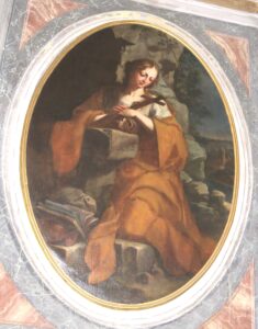 A dicembre abbiamo iniziato con due grandi tele conservate nella cappella della Residenza Giovanni XXIII. Questa volta proponiamo all’attenzione dei chieresi due quadri che si trovano nella chiesa e nel convento di San Domenico, e che, pur non versando in condizioni disastrose, meritano un restauro. Il primo è un ovale dalle dimensioni di circa cm 150×100, collocato nella sacrestia della chiesa, dove è sempre stato, sopravvivendo anche alla soppressione napoleonica del convento. Raffigura Santa Maria Maddalena, una Santa particolarmente cara ai frati Domenicani: la si riconosce dai consueti particolari iconografici, specialmente dal vaso del profumo con il quale unse i piedi di Gesù, suscitando le ire di Giuda Iscariota indignato per l’inutile spreco. E’ attribuito a Pietro Paolo Operti di Bra: un pittore attivo nella metà del Settecento. L’ovale ha bisogno di un restauro che restituisca l’originaria brillantezza ai suoi colori, uno dei principali pregi di questo artista, che si formò a Bologna alla scuola dei Carracci.