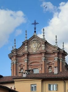 Un cuore, un grande cuore sovrasta i tetti rossi di Chieri. È un cuore fiammeggiante, coronato e al centro di uno scudo in stucco collocato nella parte più alta dell’imponente facciata della chiesa di San Filippo Neri e per questo poco visibile da terra. Un cuore scolorito a causa degli agenti atmosferici e dell’incuria degli uomini. Il cuore fiammeggiante è il simbolo della Congregazione dei Padri dell’Oratorio di San Filippo Neri ed è ripetuto molte volte all’interno della chiesa e dell’attiguo convento.