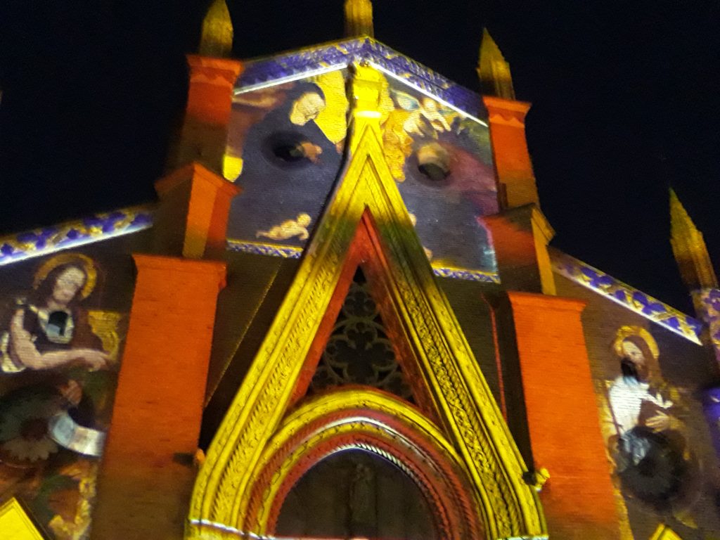 Torna a Chieri l’illuminazione mappata dei monumenti cittadini, arricchita da musiche speciali. L’arco trionfale sarà colorato dalla proiezione di un antico tessuto conservato presso il Museo del Tessile; il campanile della Chiesa di Santa Maria della Scala presenterà la proiezione dei tesori custoditi dal  Duomo: gli affreschi della Cappella Gallieri e la Pala Tana del Battistero; la facciata della Chiesa di San Guglielmo accoglierà le immagini tratte dal quadro di Francesco Fea, “Adorazione dei Magi; la facciata della Chiesa dei SS Bernardino e Rocco verrà illuminata con un gioco di luci, musiche e immagini delle opere del Moncalvo custodite all’interno e che esaltano le forme architettoniche della chiesa.