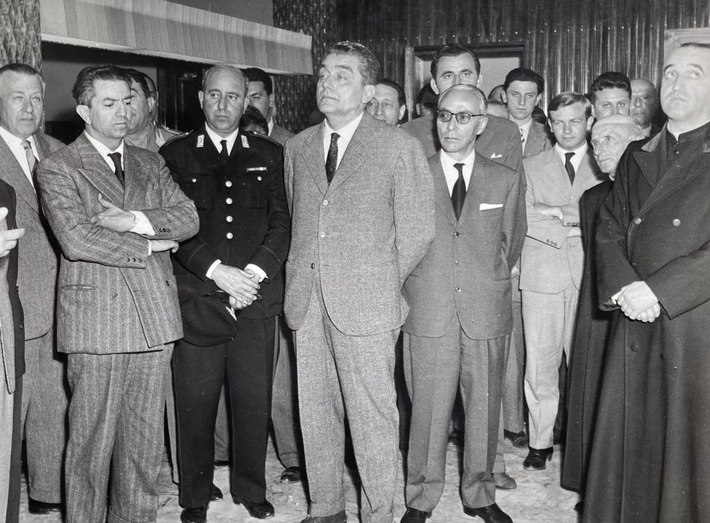 (Nella foto si distinguono tra gli altri: primo a sinistra. l’industriale tessile Pinetù Durando, ultimo a destra il canonico del Duomo don Giuseppe Miletto. Secondo alla destra di don Miletto Mario Aruga).