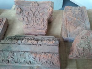 Da alcuni anni è emerso un lotto di terrecotte decorate a stampo dal palazzo di proprietà Musso (già dei conti Robbio di San Raffaele) in via Vittorio Emanuele II a Chieri. In realtà si tratta di pezzi smembrati reimpiegati in murature e strutture di servizio, la cui importanza emerge dai decori di ostentato classicismo chiaramente riferibili ai primi decenni del Cinquecento. In assenza totale di riferimenti, data la provenienza dalle proprietà Robbio e visti i confronti con gli stalli della sacrestia del Duomo di Chieri, voluti da Ottaviano Robbio nel 1530, si è delineata l’ipotesi che già in antico le terrecotte fossero espressione della committenza laica o ecclesiastica della famiglia. Le decorazioni presentano alcune brillanti variazioni sul tema della “candelabra” di tradizione romana con innesti più liberi ispirati propriamente alle “grottesche”. Si impone in particolare il tema della panoplia militare e guerresca che ha rari riscontri nella coeva decorazione in pietra, da Torino a Saliceto, assenti però nella produzione fittile (non solo in Piemonte). La presentazione delle terrecotte Robbio si accompagna a numerosi altri rinvenimenti in città e nel territorio che riscrivono in parte la facies architettonica del Rinascimento locale (per questo aspetto si rinvia alla II parte dello studio, la cui uscita è prevista a breve).