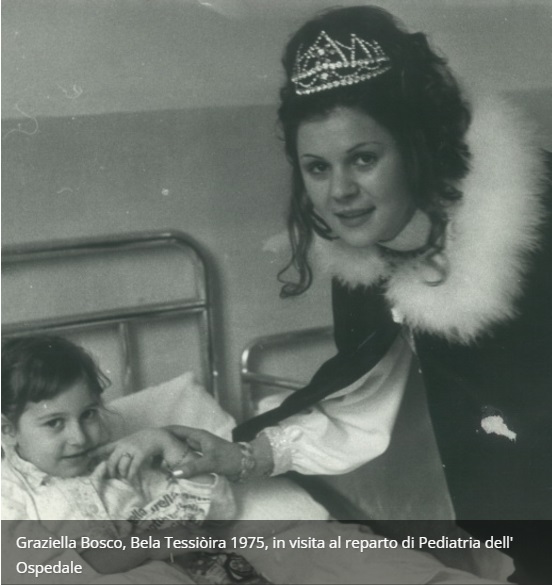 Per il 1975 la Bela Tessioira è Graziella Bosco, ventenne impiegata e studentessa serale di ragioneria; accanto a lei, anziché le due damigelle, la maschera maschile, il Mangiagrop è impersonato dallo studente universitario Gian Piero Fracchia. Marzo Ai bambini di quinta elementare si cerca di insegnare a valutare criticamente la pubblicità. Alcune insegnanti hanno fatto contare agli alunni quante pagine di alcune riviste sono da leggere e quante sono riempite di pubblicità. Gli aggettivi grandiosi usati dai pubblicitari per convincere a comperare un prodotto sono comparati con le opinioni delle mamme (allora i papà non venivano considerati in queste indagini) sugli stessi prodotti.
