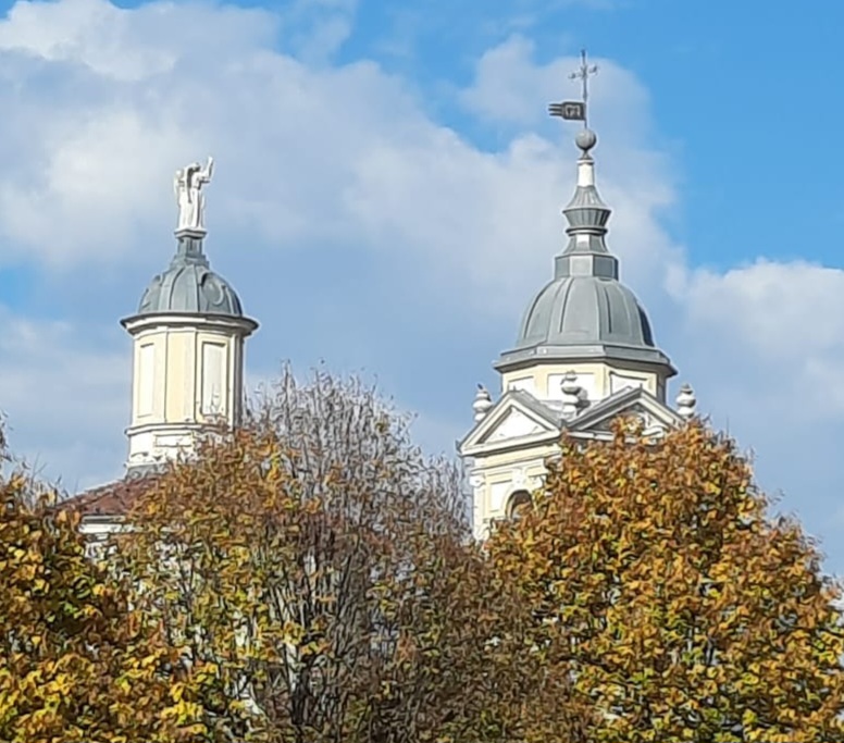 Sul grande mercato della Fiera di San Martino, che si estende tra Piazza Europa e le vie limitrofe, veglia un grande angelo. Questa volta bisogna alzare lo sguardo. E’ l’angelo che è collocato sulla cima della chiesa di Santa Margherita: una chiesa piccola, alta e molto bella, nonostante le spoliazioni subite.
