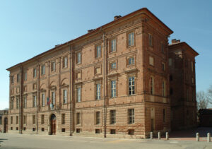 Nel 1738 il conte Francesco Giovanni Grosso di Bruzolo, di Riva presso Chieri, decise di ricostruire il palazzo di famiglia compromesso dalle guerre, dagli incendi e da parziali crolli, affidandone l’incarico al giovane architetto Bernardo Antonio Vittone che si era fatto notare con opere come la fantastica chiesa del Vallinotto a Carignano e il prestigioso Collegio delle Province che si stava costruendo in quel momento. Vittone progettò un possente edificio diviso in tre corpi. Quello centrale era dedicato all’elegante atrio e al sovrastante salone d’onore, collegati da un monumentale scalone a due rampe. I due corpi laterali, a forma di U, erano riservati agli appartamenti dei due fratelli Grosso. Per controversie sorte con il Comune, i lavori vennero interrotti e il progetto vittoniano restò a lungo incompiuto. Fu portato a termine, con sostanziali modifiche, solo nel 1771 (Bernardo Vittone era deceduto l’anno precedente) dall’architetto Giacinto Bays. Questi, fra l’altro, trasferì lo scalone andando ad occupare il settore laterale destro. Del palazzo, all’esterno colpisce la severa ma armoniosa facciata, scandita verticalmente da lesene e orizzontalmente da cornicioni, gli uni e le altre leggermente aggettanti in modo da non compromettere la possente unitarietà dell’insieme. All’interno l’attrattiva principale è il solenne salone d’onore.