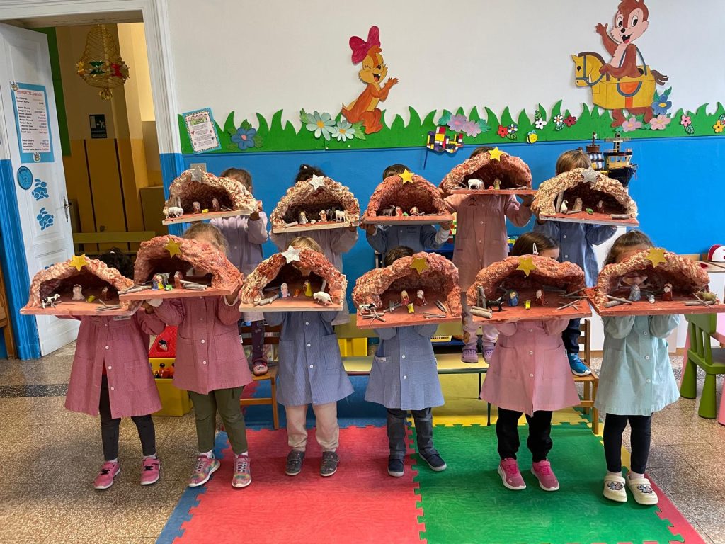 Un’ altra novità per i festeggiamenti è stata quella di regalare ai bambini dell’ ultimo anno dell’ Asilo Gribaudi una grotta, che i bambini hanno dipinto rendendola unica e personale aiutati dalle loro maestre e dalle statuine create e donate da Patrizia e Giada: rispettivamente zia e nipote. Mattia, Martina, Cloe, Alessandro, Marina, Cecilia, Jacopo, Dalia, Giulia, Federica, Giulio: sono i nomi di queste piccole donne e questi piccoli uomini che porteranno avanti le nostre belle, e sacre tradizioni.).