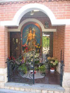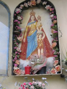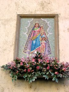 Sulla facciata di questa casa, appartenente alla famiglia Marrone, c’era un affresco del Seicento al quale gli abitanti della zona in occasione della festa della Madonna delle Grazie tributavano particolari manifestazioni di culto. La famiglia Marrone, proprietaria della casa, constatandone il degrado, e approfittando di un restauro che interessò tutta la casa, nel 1972 lo sostituì con l’attuale mosaico policromo. Asserisce, però, che sotto il mosaico esiste ancora l’antico affresco.