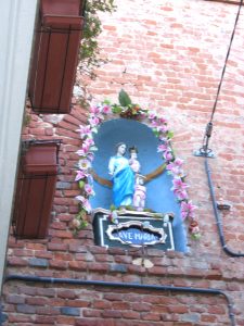 É’ popolarmente chiamata “La Madona del canton”, “La Madonna dell’angolo”. E’ una statua in gesso della Madonna delle Grazie, che almeno dal 1922 è custodita in questa antica nicchia. In occasione delle feste di settembre era fatta oggetto di particolari attenzioni da parte dei devoti chieresi.